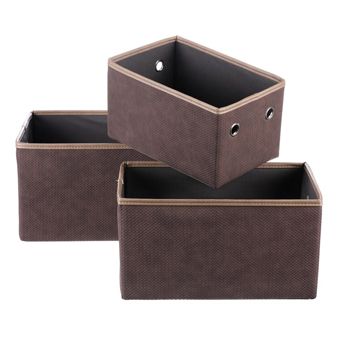 Dotaz na produktTato sada rozkládacích látkových košů o třech různých velikostí v hnědých barvách, je skvělým pomocníkem pro uskladnění prádla nebo dalších předmětů k uložení. Díky otvorům po stranách můžete snadno navázat poutka pro lepší manipulaci a přenášení. Elegantní design a praktičnost se spojily v jednom produktu, který vám pomůže udržet pořádek a hezké prostředí ve vaší domácnosti.