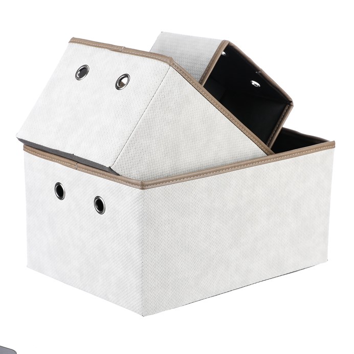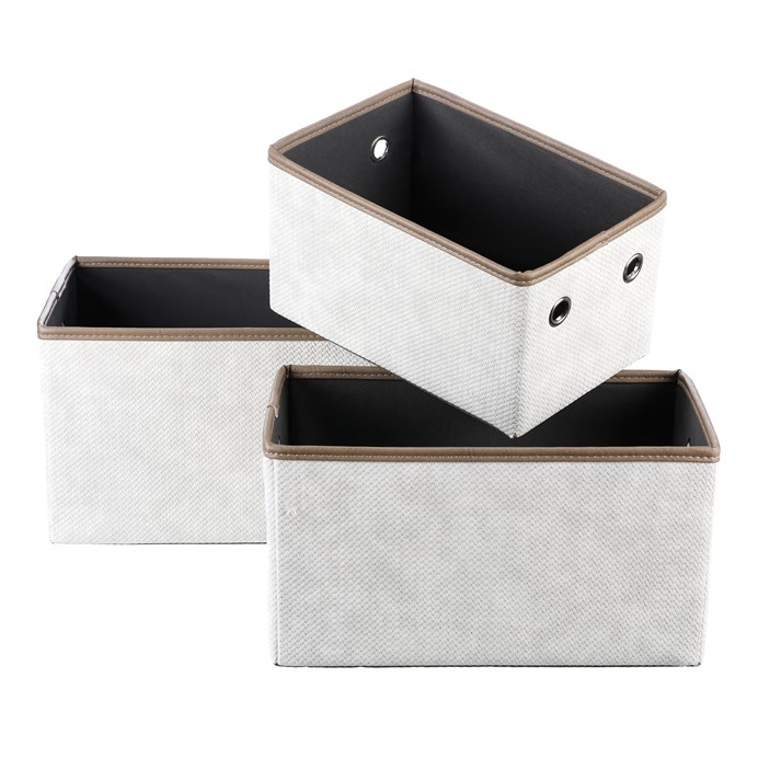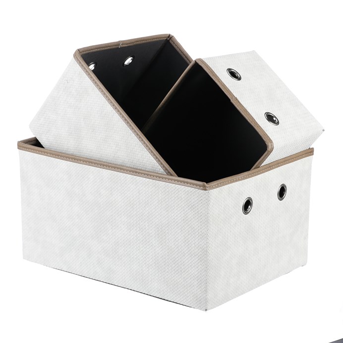 Dotaz na produkt Na splátky ještě dnesSada rozkládacích látkových košů o třech různých velikostech v krémových barvách, je skvělým pomocníkem pro uskladnění prádla nebo dalších předmětů k uložení. Díky otvorům po stranách můžete snadno navázat poutka pro lepší manipulaci a přenášení. Elegantní design a praktičnost se spojily v jednom produktu, který vám pomůže udržet pořádek a hezké prostředí ve vaší domácnosti.