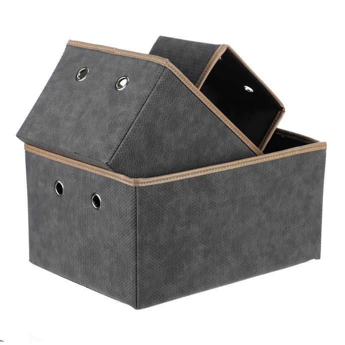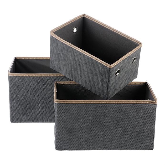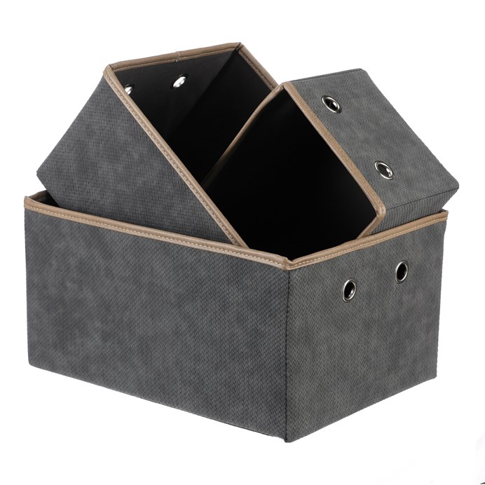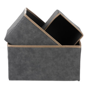 Dotaz na produktSada rozkládacích látkových košů o třech různých velikostech v šedých barvách, je skvělým pomocníkem pro uskladnění prádla nebo dalších předmětů k uložení. Díky otvorům po stranách můžete snadno navázat poutka pro lepší manipulaci a přenášení. Elegantní design a praktičnost se spojily v jednom produktu, který vám pomůže udržet pořádek a hezké prostředí ve vaší domácnosti.