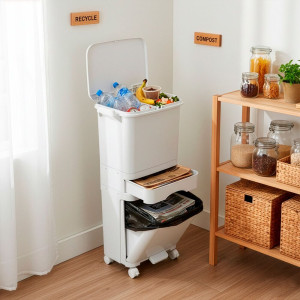 Koš na tříděný odpad SPRINGOS HA1110 bílý je chytré a moderní řešení pro přehledné třídění odpadu v domácnosti. Díky víceúrovňovému provedení umožňuje oddělovat různé druhy odpadu na jednom místě, aniž by zabíral zbytečně mnoho prostoru. Elegantní bílý design se snadno začlení do kuchyně, technické místnosti i kanceláře a působí čistě a nenápadně.