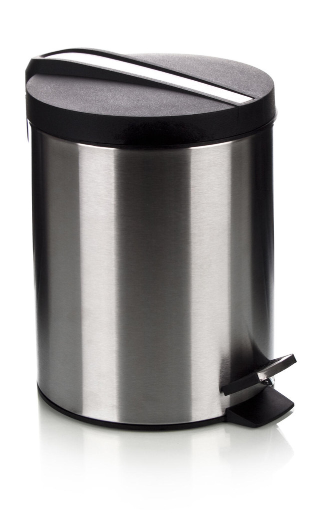 Má matný povrch, plastové víko a vnitřní vyjímatelnou nádobu na odpad.