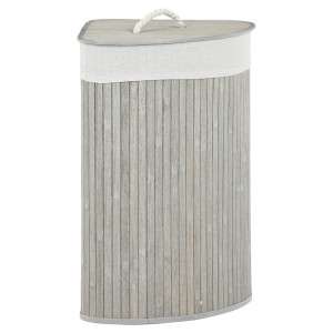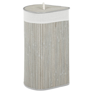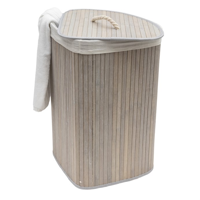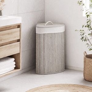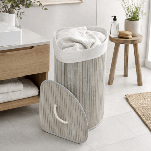 Dotaz na produktPrádelní koš z bambusu v šedém odstínu nabízí praktické rohové provedení, které efektivně využívá prostor v koupelně či šatně. Koš je vybaven víkem s pevnou rukojetí z přírodního provazu, což usnadňuje manipulaci a zároveň zabraňuje úniku pachů. Bambusové lamely jsou uspořádány vertikálně a dodávají koši přírodní vzhled s decentní texturou. Vnitřní část je lemována látkovou vložkou, která usnadňuje údržbu a zabraňuje poškození prádla. Díky pevnému materiálu a stabilnímu tvaru je koš vhodný pro každodenní použití.