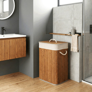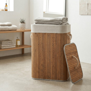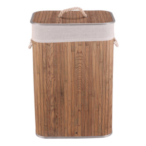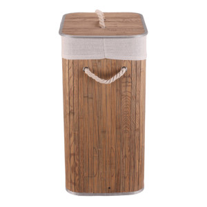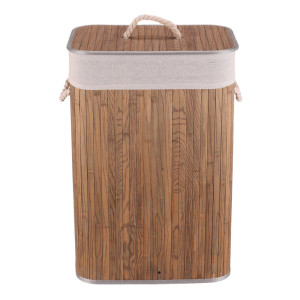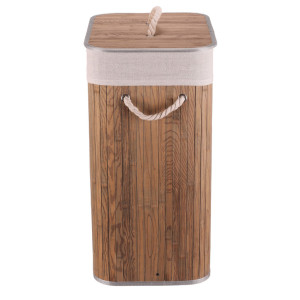 Dotaz na produktPrádelní koš z bambusu v tmavě šedém odstínu nabízí praktické řešení pro uskladnění prádla s přírodním vzhledem. Koš je opatřen víkem a dvěma pevnými úchyty z provazu pro snadnou manipulaci. Bambusové lamely jsou uspořádány vertikálně a doplněny textilním lemem v šedé barvě, který zjemňuje celkový design. Díky použitým materiálům je koš pevný a navržený pro dlouhou životnost, přičemž bambus se snadno udržuje. Je vhodný do koupelen, ložnic i prádelních místností, kde přispívá k uklizenému a stylovému prostředí.