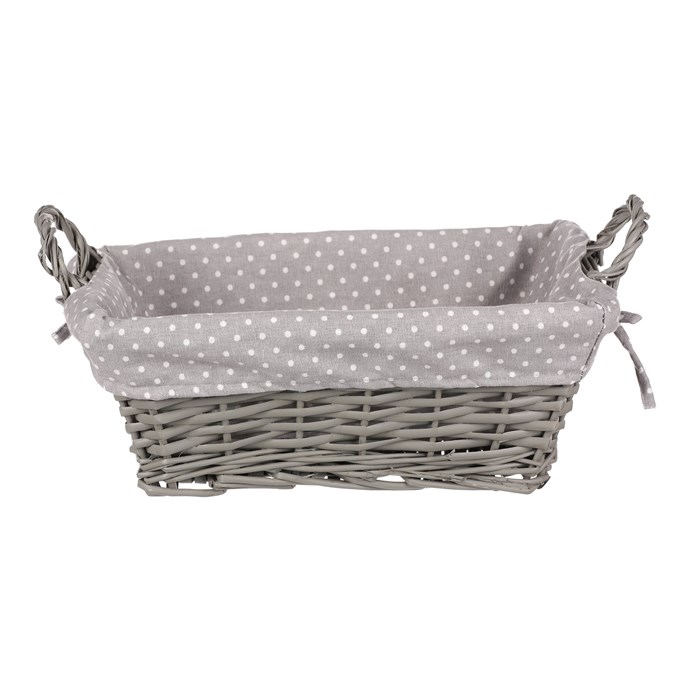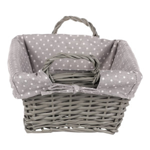 Dotaz na produktTento proutěný košík vystlaný látkou je výborným pomocníkem pro milovníky přírodních materiálů, kteří se snaží udržovat pořádek v regálech a na poličkách. Je v neutrální šedé barvě a má po stranách dvě ucha, která usnadňují manipulaci s ním. Díky svému jednoduchému a přirozenému designu se dokonale hodí do různých typů interiérů. Můžete jej využít k uskladnění a uspořádání různých věcí, od knih a hraček po textilie a různé drobnosti konče. Tento košík vám nejen pomůže udržovat nastolený pořádek, ale také přinese do vašeho prostoru příjemný nádech přírodní elegance.