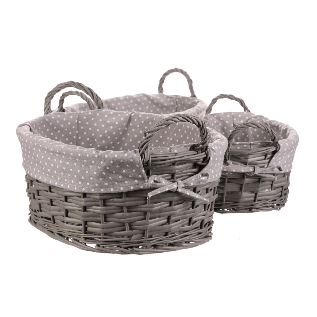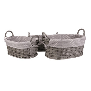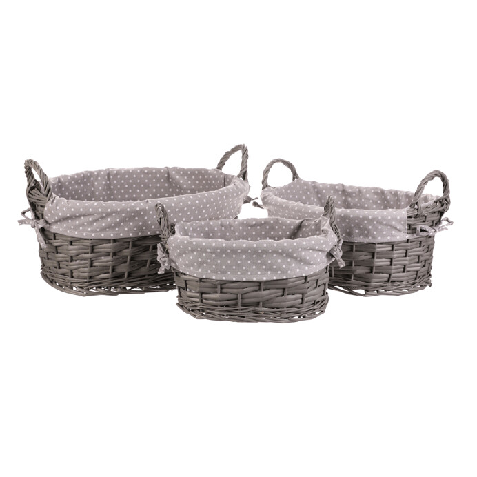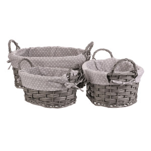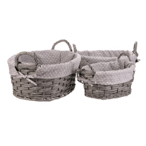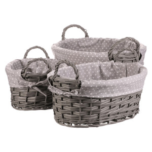 Dotaz na produkt Na splátky ještě dnesTento proutěný košík vystlaný látkou je výborným pomocníkem pro milovníky přírodních materiálů, kteří se snaží udržovat pořádek v regálech a na poličkách. Nabízíme jej v sadě o třech různých velikostech. Je v moderní šedé barvě a má po stranách dvě ucha, která usnadňují manipulaci s ním. Díky svému jednoduchému a přirozenému designu se dokonale hodí do různých typů interiérů. Můžete jej využít k uskladnění a uspořádání různých věcí, od knih a hraček po textilie a různé drobnosti konče. Tento košík vám nejen pomůže udržovat nastolený pořádek, ale také přinese do vašeho prostoru příjemný nádech přírodní elegance.