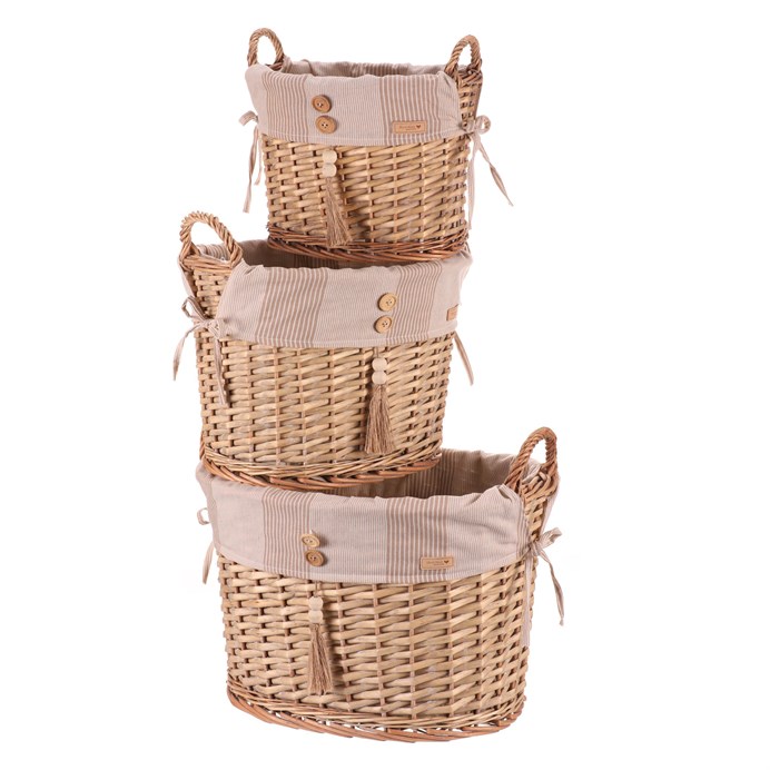 Dotaz na produkt Na splátky ještě dnesUdržujte pořádek snadno a efektivně s tímto elegantním hranatým proutěným košem v přírodní barvě. Sada tří velikostí se skvěle hodí do každé skříně nebo do regálu, přičemž ucha po stranách jsou praktická pro snadné přemístění koše i s obsahem. Vnitřní látka je lehce snímatelná, což usnadňuje její údržbu.