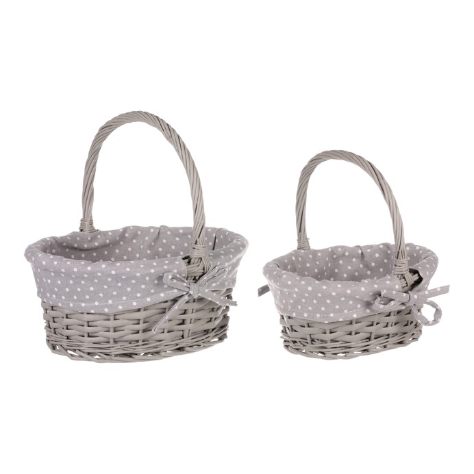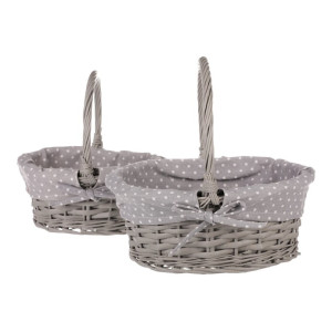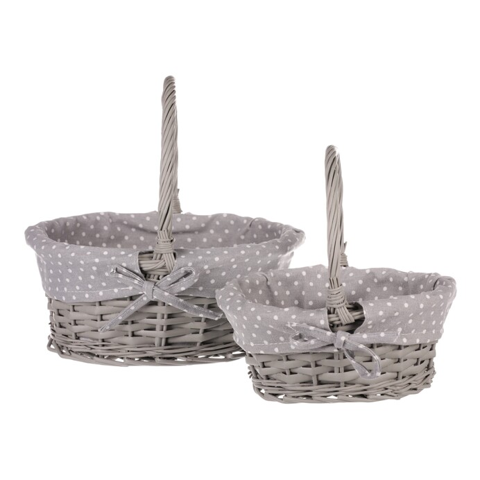 Dotaz na produktTento šedý proutěný koš s jedním velkým uchem v sadě dvou různě velkých kusů je multifunkční dekorací, která má skutečně široké uplatnění. Svým praktickým designem je skvělým společníkem zejména pro přenášení věcí. Je lehký a dobře se nosí, takže je ideální i na sběr různých bylinek, bobulovin a dalších spíše menších plodů. Jednoduché a praktické ústřední ucho zajišťuje pohodlné přenášení v jedné ruce, a to i tehdy, kdy je košík zcela zaplněn. Je navíc vystlaný látkou, což mu dodává příjemný vzhled, a je ideální volbou pro milovníky přírodních materiálů, kteří si chtějí užít kombinaci funkčnosti a estetiky v jednom.