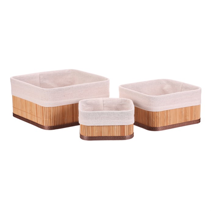 Dotaz na produktSada tří regálových košů v přírodním provedení kombinuje pevné bambusové tělo s jemnou textilní výstelkou v béžové barvě. Koše jsou navrženy pro praktické uspořádání drobných předmětů v regálech, skříních nebo na pracovních stolech. Přírodní materiály zajišťují kvalitní zpracování a snadnou údržbu, zatímco různé velikosti košů umožňují flexibilní využití podle potřeby. Jemné lemování spodní části dodává košům stabilitu a zároveň estetický detail. Sada je vhodná pro všechny, kdo hledají funkční a zároveň vizuálně příjemné řešení úložného prostoru.