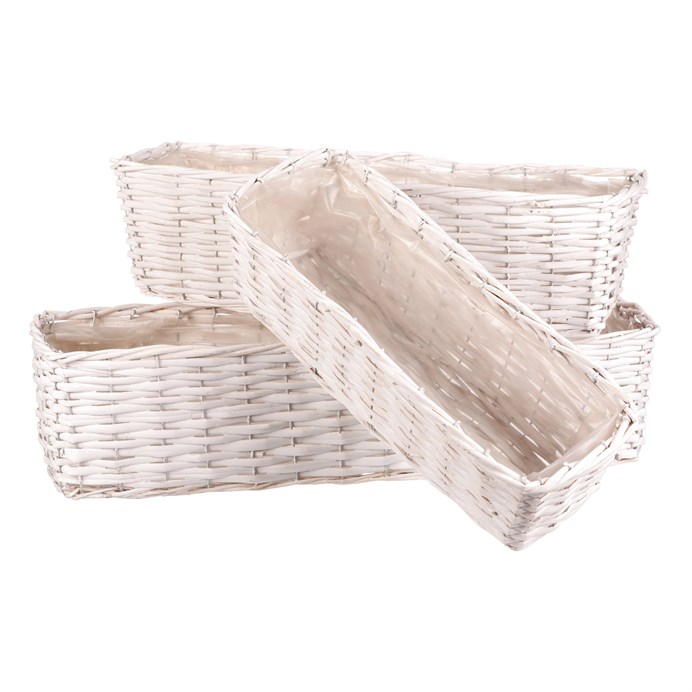 Dotaz na produkt Na splátky ještě dnesHranatý proutěný truhlík v elegantním bílém provedení je ideální volbou pro stylové a funkční aranžování květin. Sada obsahuje tři různě velké kusy, přičemž každý truhlík je vybaven ochrannou igelitovou vložkou, která zabraňuje prosakování vody a chrání samotné proutí i jeho okolí. Tento elegantní set je perfektní pro uspořádání rostlin ve vašem domově, balkoně, terase či zahradě.