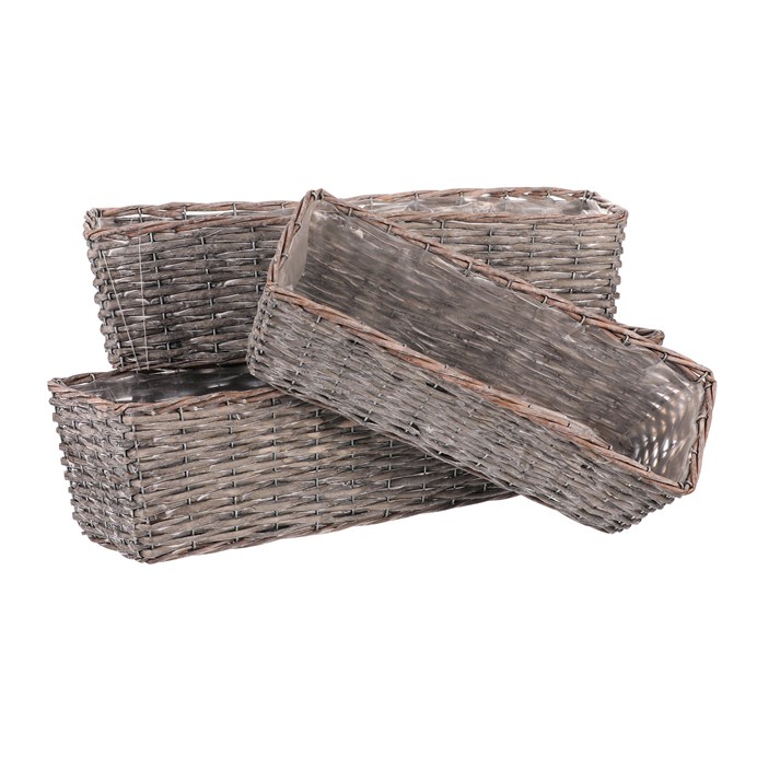 Dotaz na produkt Na splátky ještě dnesHranatý proutěný truhlík v šedé barvě je ideální volbou pro stylové a funkční aranžování květin. Sada obsahuje tři různě velké kusy, přičemž každý truhlík je vybaven ochrannou igelitovou vložkou, která zabraňuje prosakování vody a chrání samotné proutí i jeho okolí. Tento elegantní set je perfektní pro uspořádání rostlin ve vašem domově, balkoně, terase či zahradě.