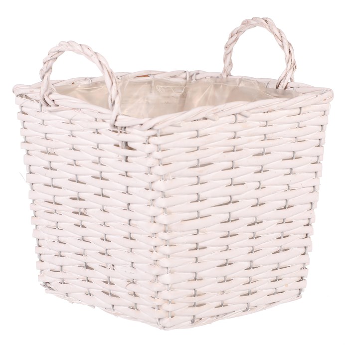Dotaz na produktHranatý bílý proutěný košík s ochrannou igelitovou vložkou je elegantní a praktický obal na květiny. Je ideální pro zvýraznění krásy vašich rostlin a přidá do vašeho prostoru svěží, čistý vzhled.