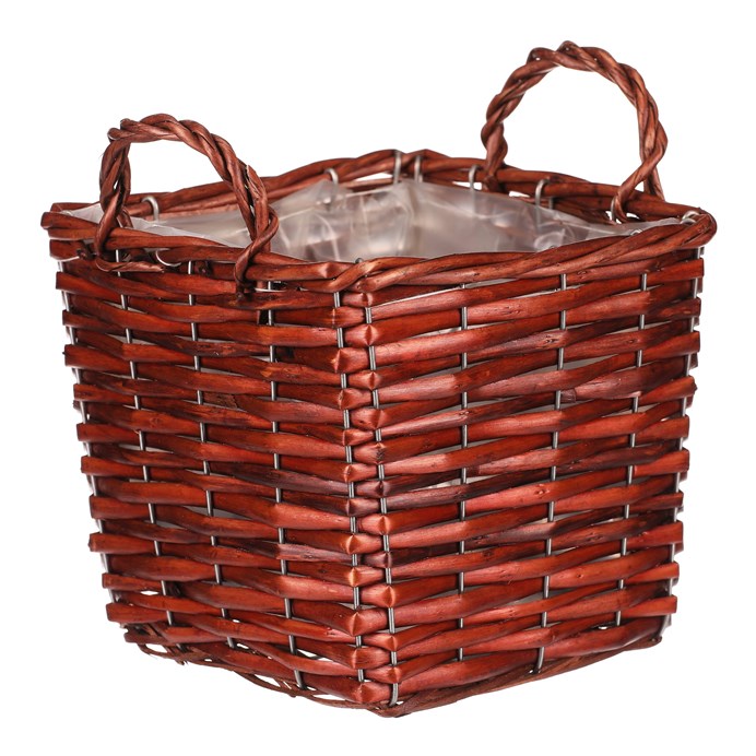 Dotaz na produktHranatý proutěný košík na květiny v tmavě hnědé barvě s ochrannou igelitovou fólií uvnitř je skvělou volbou pro elegantní a praktické aranžování rostlin. Tento košík kombinuje estetiku přírodního proutí s funkční ochranou, která zabraňuje prosakování vody a zajišťuje dlouhou životnost.