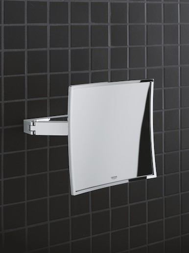 Kosmetické zrcátko GROHE Selection Cube (zvětšení: 3×). Německá kvalita, chromový povrch a podomítkové upevnění.