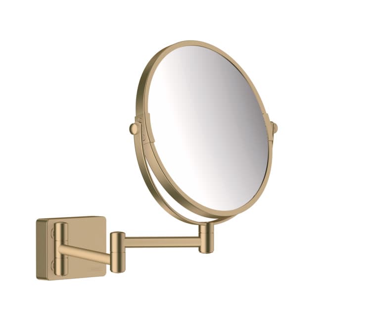 Dotaz na produkt Na splátky ještě dnesZdobené zrcadlo na holení AddStoris v matně bílé barvě s LED osvětlením od Hansgrohe je praktickým pomocníkem při každodenní kosmetické péči. Nadčasový design společně s povrchem v odstínu kartáčovaného bronzu, který se snadno čistí, dodá vaší koupelně dokonalost. Otočením zrcadla si vyberete jedno nebo trojnásobné zvětšení. Díky otočné funkci zrcadlo podle potřeby rychle nastavíte. Když ho nepoužíváte, můžete ho složit ke zdi a ušetřit tak místo.