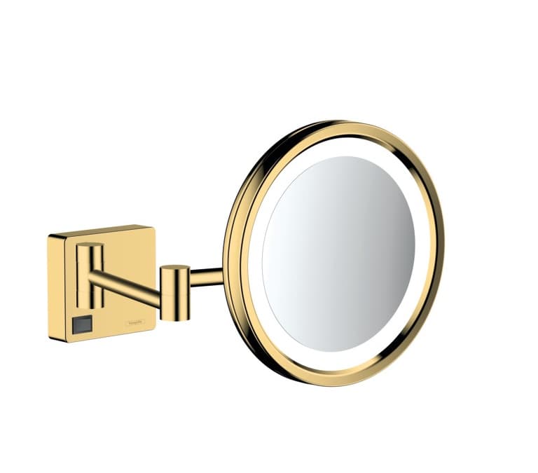 Zdobené zrcadlo na holení AddStoris v matně bílé barvě s LED osvětlením od Hansgrohe je praktickým pomocníkem při každodenní kosmetické péči. Nadčasový design společně s povrchem se zlatým vzhledem, který se snadno čistí, dodá vaší koupelně dokonalost. Neoslňující LED osvětlení na zrcadle společně s trojnásobným zvětšením vytváří ideální podmínky pro zklidňující péči a osobní hygienu. Díky otočné funkci zrcadlo podle potřeby rychle nastavíte. Když ho nepoužíváte, můžete ho složit ke zdi a ušetřit tak místo.