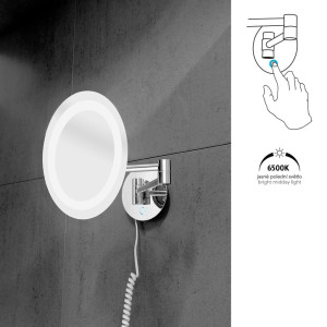 Dotaz na produkt Na splátky ještě dnesVaše péče o pleť a dokonalé nalíčení bude pohodlnější a příjemnější s LED kosmetickým zrcátkem NIMCO, podsvíceným po obvodu v zrcadle. Jeho pětinásobné zvětšení vám pomůže k dokonalosti. Použité LED čipy o vysokém výkonu. Barevná teplota zvolena studená bílá. Teplota chromatičnosti 6500K. Dotykový podsvícený spínač. Připojení 220-240V. Ochrana IP 21. Výkon 8W. LED zrcátko s vypínačem, zapojení ploché vidlice do zásuvky. Délka kabelu bez natažení 56 cm, po vytažení 120cm. Hloubka zrcadla ve složeném stavu u zdi je 8 cm. Celková šířka zrcadla ve složeném stavu u zdi je 24,5 cm.