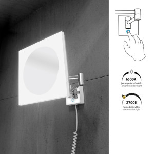 Dotaz na produkt Na splátky ještě dnesVaše péče o pleť a dokonalé nalíčení bude pohodlnější a příjemnější s LED kosmetickým zrcátkem NIMCO, podsvíceným po obvodu- PLEXIGLASS. Jeho pětinásobné zvětšení vám pomůže k dokonalosti. Použité LED čipy o vysokém výkonu. Dotykový podsvícený senzor s přepínáním barev studená bílá/teplá bílá. Teplota chromatičnosti 6500K/2700K. Dotykový podsvícený spínač. Připojení 220-240V. Ochrana IP 21. Výkon 8W. LED zrcátko s vypínačem, zapojení ploché vidlice do zásuvky. Délka kabelu bez natažení 56 cm, po vytažení 120 cm. Hloubka zrcadla ve složeném stavu u zdi je 9 cm. Celková šířka zrcadla ve složeném stavu u zdi je 23 cm.