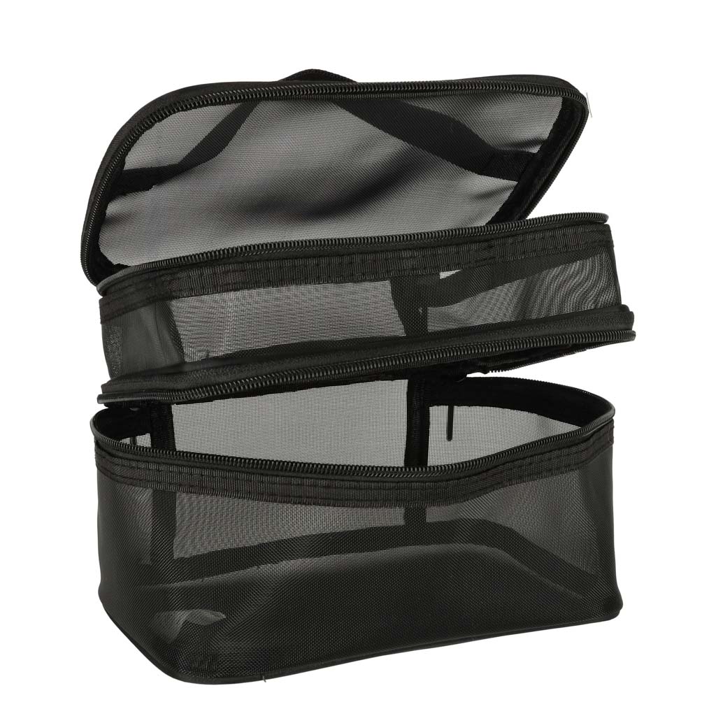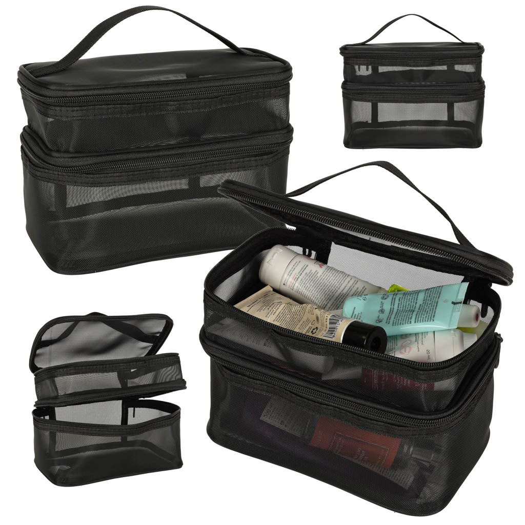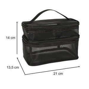 Praktická cestovní kosmetická taška- je nezbytnou výbavou na každé cestě. Díky svému dvouúrovňovému designu umožňuje uspořádat vaši kosmetiku. Zapíná se na oboustranný zip. Je vyrobena ze síťovaného materiálu, který usnadňuje hledání ukrytých produktů. Má praktickou rukojeť pro pohodlné přenášení.