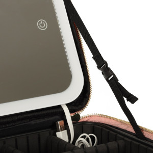 Růžová cestovní kosmetická taštičkabude ideální pro vaši příští cestu! Nejenže bude ideální pro uložení vaší kosmetiky, ale také vám pomůže s přesným líčením za jakýchkoli podmínek - má zrcátko s LED osvětlením. Uvnitř má kosmetická taštička několik přihrádek, které si můžete uspořádat podle svých potřeb. Navíc obsahuje kapsu na štětce nebo jiné drobnosti.
