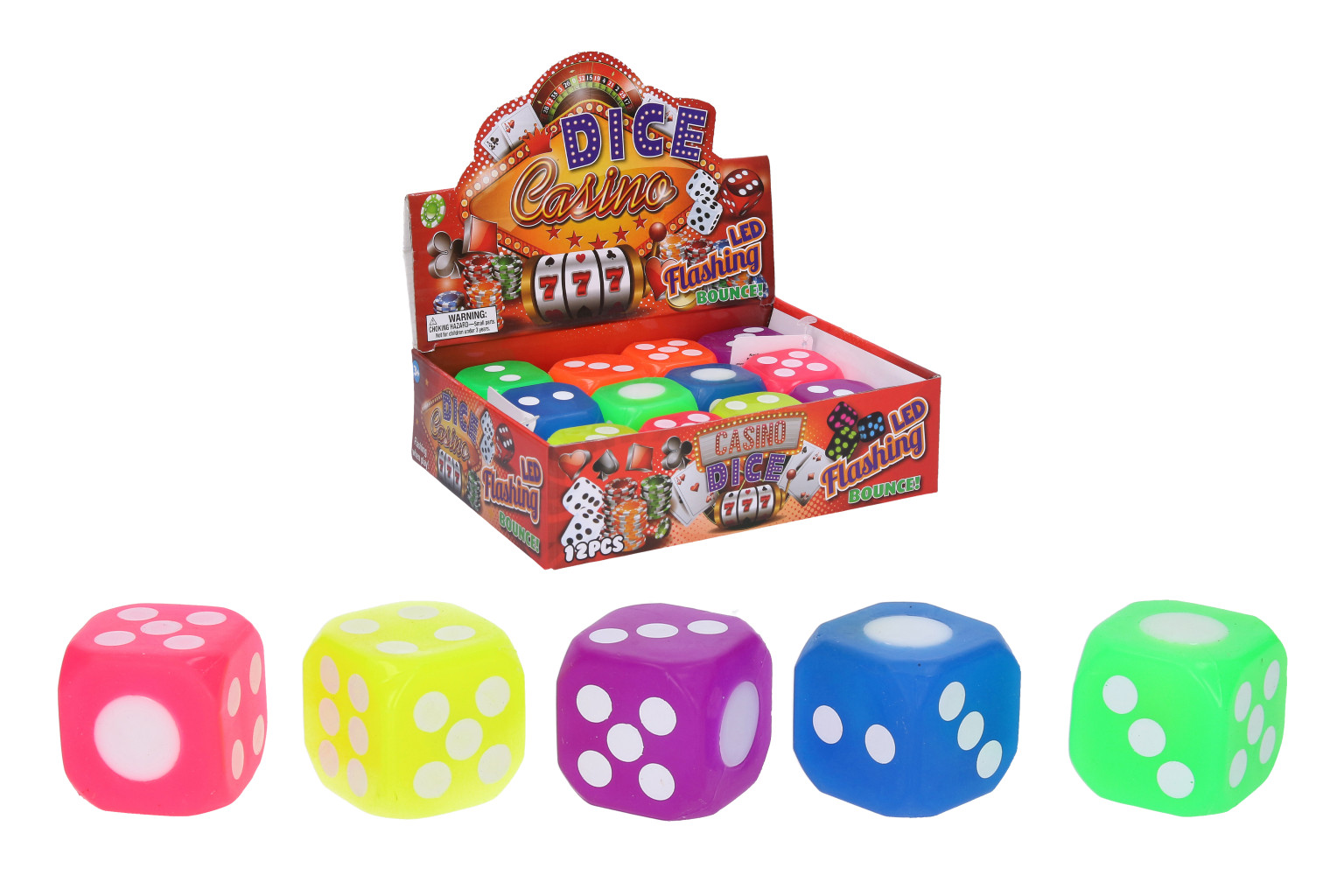 Dotaz na produktKostka hrací. Velikost 4 cm. Světelné efekty, baterie nelze měnit. 12 ks display box. 6 variant - oranžová, modrá, zelená, žlutá, fialová, růžová.