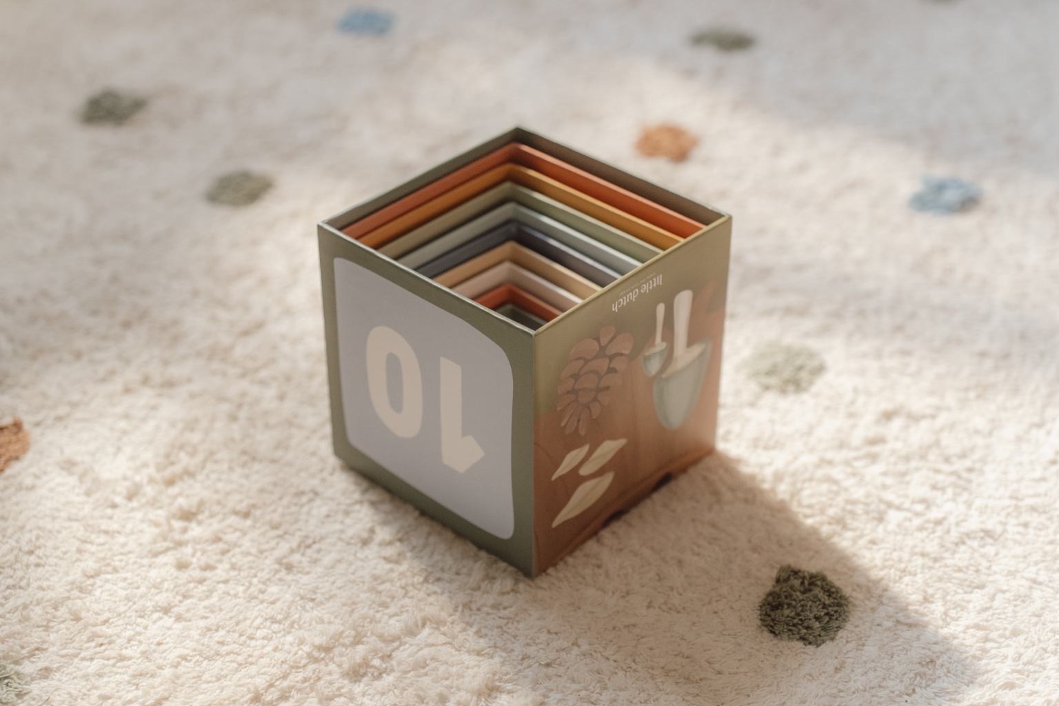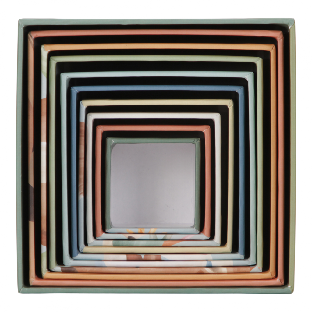 Nejmenší kostka má 5 cm a největší má 14 cm. Po skončení hraní kostky snadno uložíte složením do sebe.