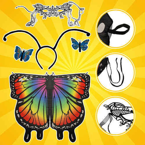 -kompletní sada – křídla, maska na oči, čelenka s tykadly a sponky do vlasů, nic nemusíte sestavovat – stačí vyndat z obalu a outfit je připravený na hraní nebo na ples