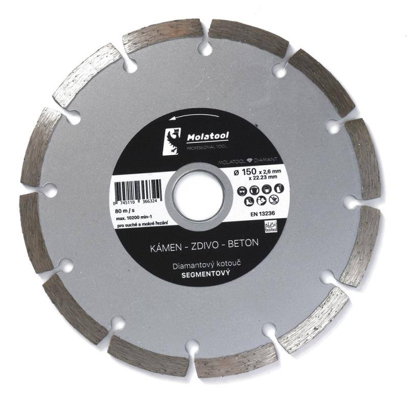 kotouč diamantový segmentový Molatool Segment Proprofesionální diamantový kotouč prakticky pro všechny stavební materiály pro řezání mramoru a žuly, kamenických a výrobků z kamene, betonu, betonových...