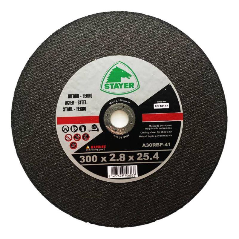 řezací kotouč pro stolní řezací strojepro řezání středních profilů železa a nerezové oceliprůměr kotouče: 300 mmvýška kotouče: 2,8 mmvnitřní průměr: 25,4 mmmax. pracovní rychlost: 80 m/s