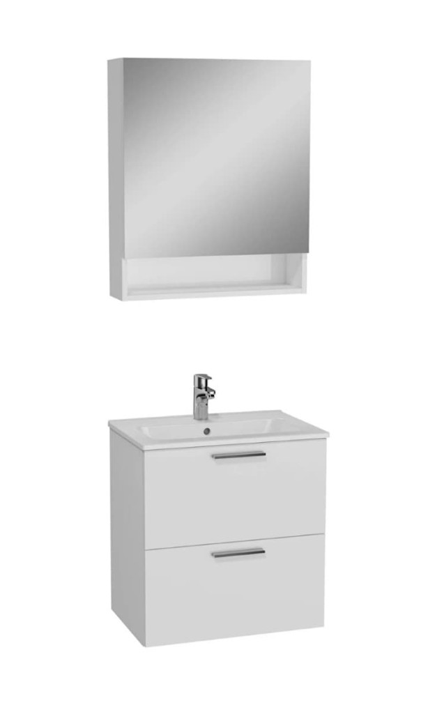 Dotaz na produkt Na splátky ještě dnesNábytkový set do koupelny obsahuje keramické umyvadlo, závěsnou umyvadlovou skříňku v bílé barvě se 2 zásuvkami, nástěnnou zrcadlovou galerku a odpadní armaturu. Vhodné do malých koupelen. Oceníte tam, kde potřebujete užší, tzv. kompaktní provedení. Umyvadlo o hloubce 39,5 cm.