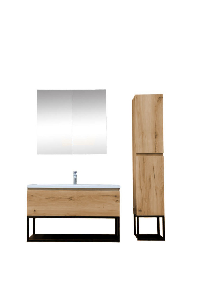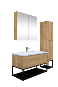 Koupelnový nábytek ze série B-Way představuje inovativní kolekci s elegancí a nadčasovým designem. Tato unikátní kombinace dřevěné skříňky a kovového rámu vytváří dokonalé minimalistické spojení těchto materiálů. Dřevěná skříňka přináší teplý a příjemný kontrast k odolnému kovovému rámu.