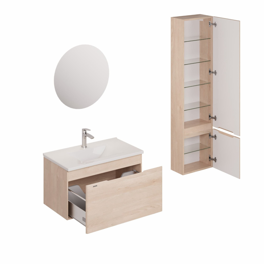 • Koupelnová skříňka s umyvadlem Naturel Ancona 80x45x46 cm s keramickým umyvadlem v dekoru akácie. Povrch v provedení fólie. S plnovýsuvem a dotahem.