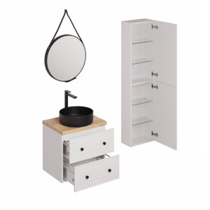 Dotaz na produkt Na splátky ještě dnesKoupelnová sestava s umyvadlem včetně umyvadlové baterie, vtoku a sifonu Naturel Forli je cenově zvýhodněný koupelnový set, který nabízí moderní a jednoduchý design. Skříňky jsou vyrobeny z kvalitního materiálu v bílé barvě, která dodává celé sestavě elegantní vzhled. Sestava nabízí dostatek úložného prostoru pro koupelnové potřeby. Umyvadlová baterie s chromovaným povrchem dokonale ladí s celkovým designem sestavy. Celkově se jedná o moderní a stylovou sestavu, která dokonale doplní vaši koupelnu.
