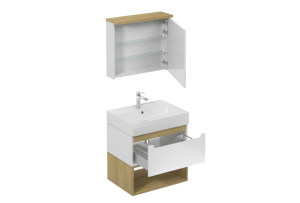 Koupelnová sestava s umyvadlem Naturel Stilla v bílém lesku zpříjemní každodenní chvíle strávené v koupelně a je dokonalou kombinací elegance, kvality a praktičnosti. Jemné linie s dřevěnými prvky dodávají této sestavě nadčasový styl. Každý detail byl pečlivě navržen tak, aby vaše koupelna působila vkusně a moderně, a zároveň poskytovala praktické úložné prostory pro všechny vaše potřeby