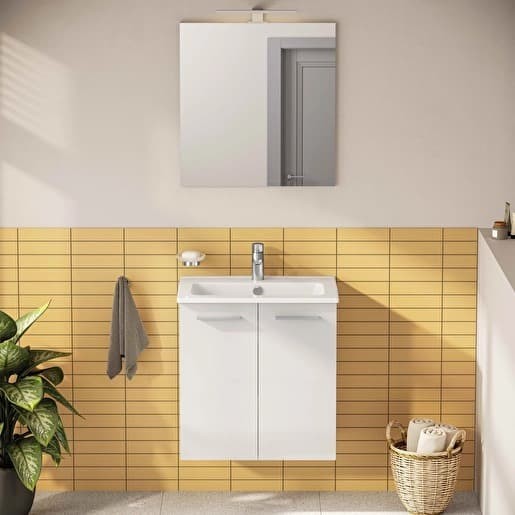 Dotaz na produkt Na splátky ještě dnesNábytkový set do koupelny balený v jedné krabici. Set obsahuje keramické umyvadlo, závěsnou umyvadlovou skříňku s dvířkami, nástěnné zrcadlo, LED osvětlení a odpadní armaturu.