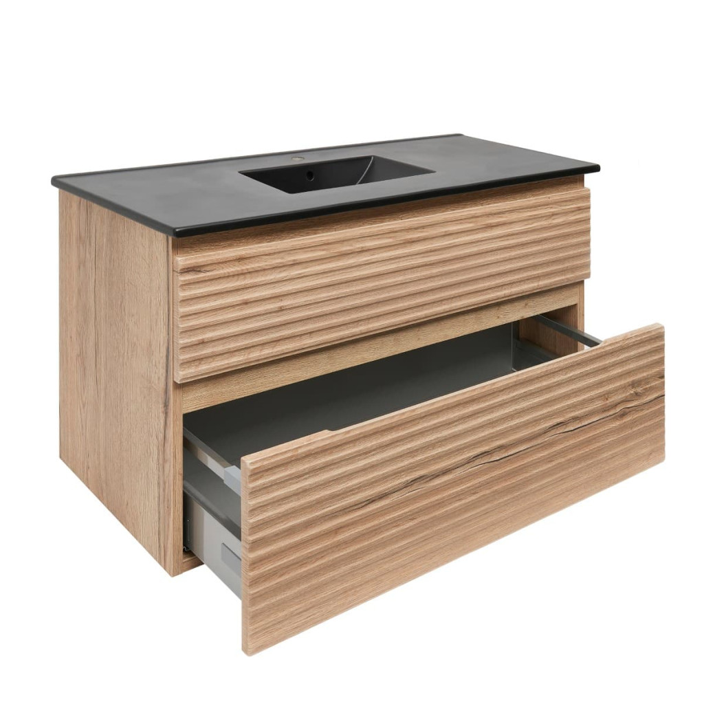 Koupelnová skříňka s keramickým umyvadlem patří do série Naturel Savona. Tato série je vyjímečná frézováním, které dodává celkovému vzhledu skříňky nadčasový charakter a zároveň ji činí moderní a stylovou. Tento prvek se také postará o to, že koupelnová skříňka bude vypadat jedinečně a nezaměnitelně. Součástí skříňky je keramické umyvadlo, které perfektně ladí s celkovým vzhledem. Koupelnová skříňka v dekoru dub halifax nabízí dostatek úložného prostoru pro vaše koupelnové potřeby.