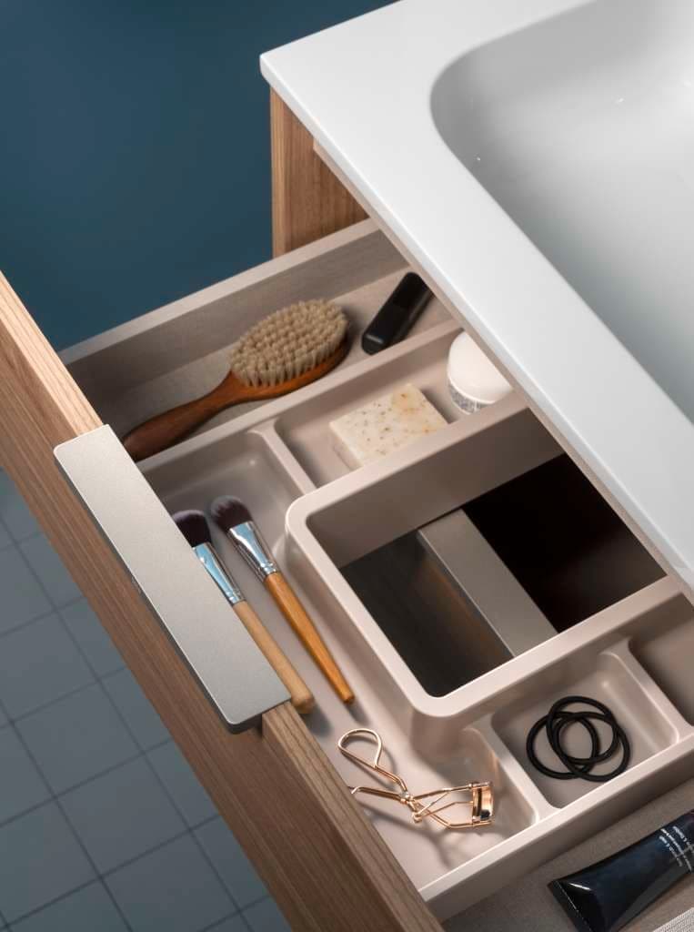 Součástí horní zásuvky je organizér.PARAMETRY:Balení: 1 ksDruh výrobku: skříňka pod umyvadlo Barva popisná: dub Barva základní: dřevodekor Výbava: plnovýsuv s dotahem Povrch: lamino Typ: bez...