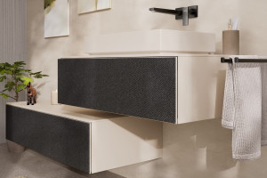 PARAMETRY:Balení: 1 ksHmotnost balení: 68,792  kgDruh výrobku: koupelnová skříňka Barva popisná: matná bílá/textilní tmavá šedá Barva základní: béžová Výbava: plnovýsuv Povrch: lakovaný Šířka: 118 ...