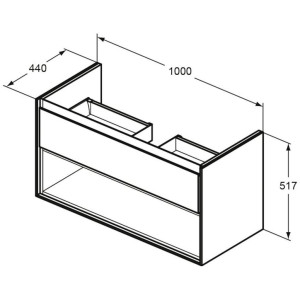 Dotaz na produkt Na splátky ještě dnesConnect Air skříňka pod nábytkové umyvadlo 100 cm včetně upevnění. 1 otevřená police + 1 zásuvka se Soft-close zavíracím mechanismem. Povrch: vícevrstvý lesklý nebo matný lak, v případě dekoru dřeva melaminová vrstva. Pro kombinaci s umyvadlem na desku nutno doobjednat vrchní desku. Provedení: lesklý lak bílý + matný lak sv. šedý