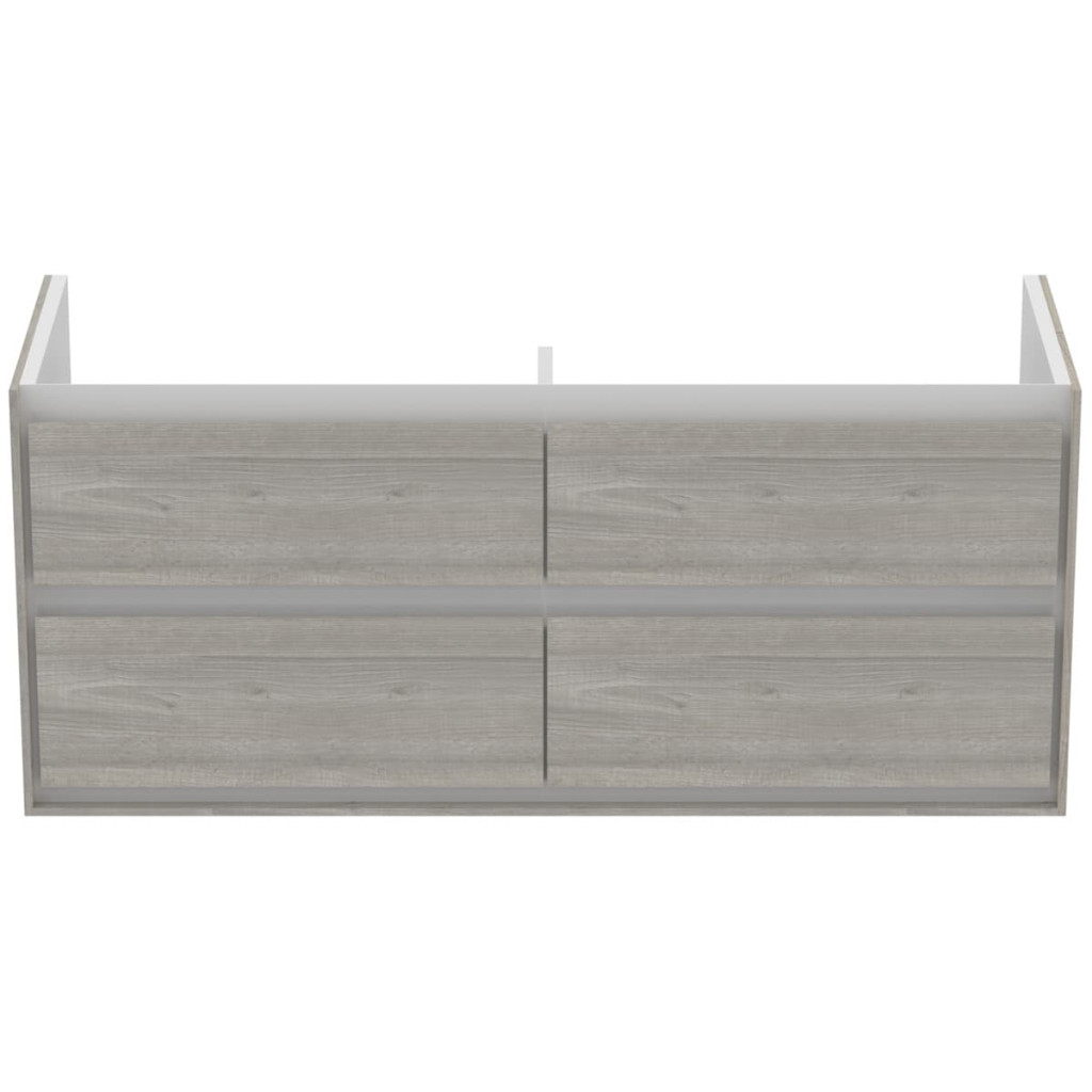 Dotaz na produkt Na splátky ještě dnesConnect Air skříňka 120 mm pod nábytkové dvojumyvadlo včetně upevnění. 4 zásuvky se Soft-close zavíracím mechanismem. Povrch: vícevrstvý lesklý nebo matný lak, v případě dekoru dřeva melaminová vrstva. Provedení: dekor šedý dub + matný lak bílý.