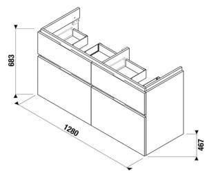 Dotaz na produkt Na splátky ještě dnesElegantní bílá skříňka pod umyvadlo Cubito 130 cm od známé společnosti Jika, o velikosti 128x68,3x46,7 cm, se 4 zásuvkami s plnovýsuvnými pojezdy a s brzdou dovírání, je díky svému modernímu designovému provedení vhodnou volbou do každé koupelny.