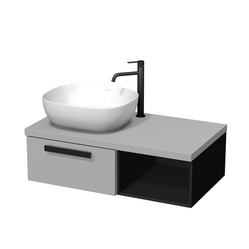 Levé provedení - skříňka pro umyvadlo vlevo, deska bez otvorů pro sifon a baterii - pro více možností umístění a typů baterií. V nabídce také pravé provedení ARTDECO90STPBU.
