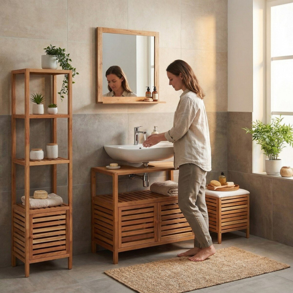 Dotaz na produkt Na splátky ještě dnesNábytek Naturel Home je vyroben z přírodního ořechu, a to jak z bělového, tak i jádrového dřeva (zde je charakteristická rozdílná barevnost, někdy s velmi výrazným přechodem, zejména ve spojích). Spoje desek a hranolů jsou zubové šikmé, v plochách viditelné. Toto nelze posuzovat jako vzhledovou vadu, naopak je výhodou, že je na první pohled zřejmé, že se jedná o přírodní materiál. Dřevo je napuštěno ekologickým olejem, nikoli lakované, jedná se tedy o co nejšetrnější způsob ošetření povrchu tak, aby nábytek byl vhodný pro použití ve vlhkém prostředí koupelen, ale zároveň byla zachována přirozená struktura a povrch dřeva. S nábytkem Home budete zase o kousek blíž přírodě.