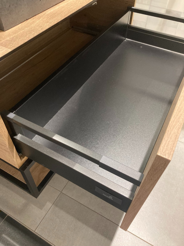 OXO skříňky jsou vyrobeny z LTD 18mm olepeny ABS hranou za použití PUR lepidla, které zajišťuje vysokou ochranu proti vlhkosti, pojezdy jsou německé výroby HETTICH ATIRA v černé barvě, bezúchytkové provedení PUSH (otevírání tlakem), které vybavujeme již od 49 cm synchronizací pro perfektní "fungování".