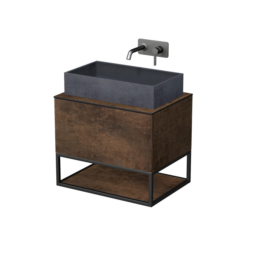 Dotaz na produkt Na splátky ještě dnesKoupelnový nábytek z vysoce odolného materiálu Compact v měděném dekoru. Skříňku složíte z komponentů, které jsou dodávány zvlášť – skříňka, deska a police.