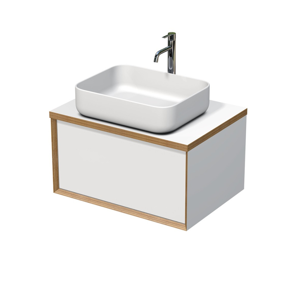 Skříňka se dodává s horní krycí deskou bez otvorů pro sifon a baterii, můžete si vybrat z více typů umyvadel na desku.