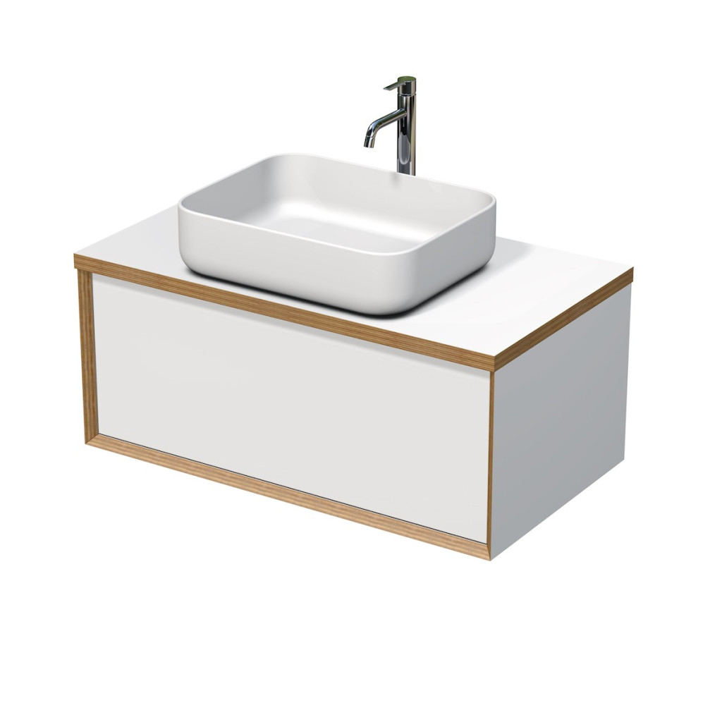 Skříňka se dodává s horní krycí deskou bez otvorů pro sifon a baterii, můžete si vybrat z více typů umyvadel na desku.