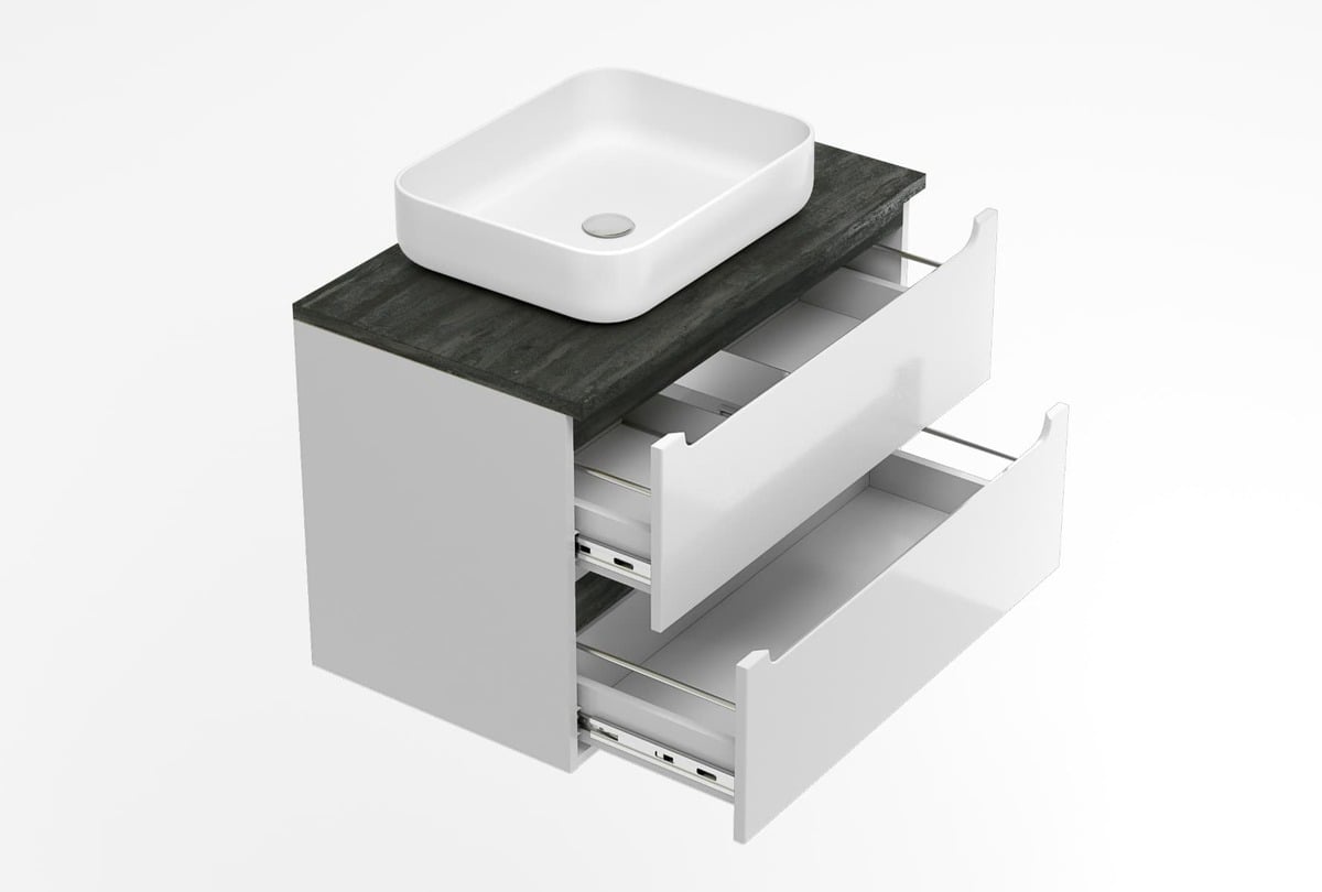 Dotaz na produkt Na splátky ještě dnesZávěsná koupelnová skříňka Stilla se dvěma zásuvkami v rozměru 80x60x45 cm s krycí deskou v barvě betonová černá. Skříňka je součástí modulární kolekce a lze ji kombinovat s horní deskou v barvě dle vlastního výběru. Výběrem horní desky, která je širší než skříňka, je možné vytvořit individuální uspořádání přidáním dalších skříněk z kolekce a boxů. Toto řešení umožňuje získat více úložného prostoru pro všechny koupelnové doplňky.