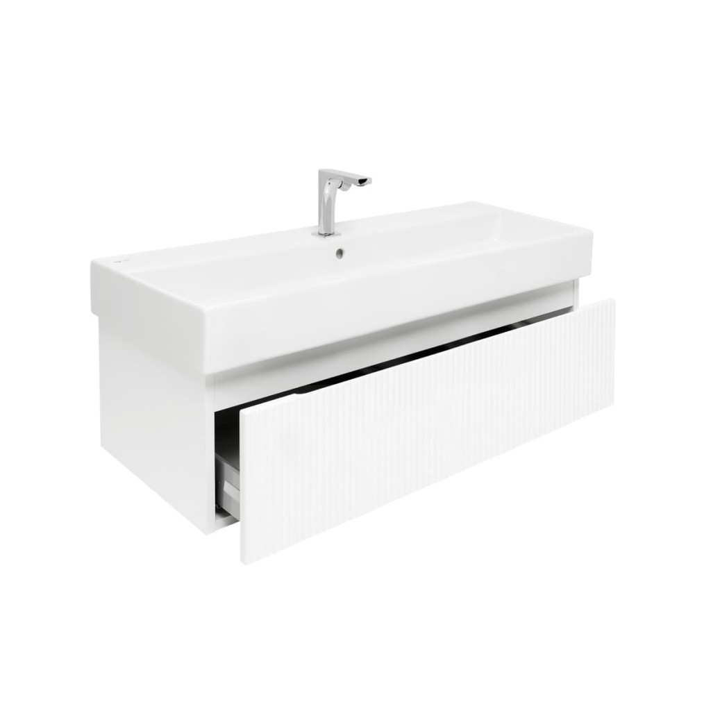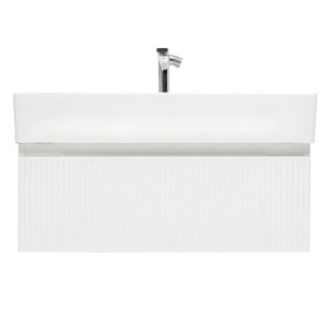 Skříňka má rozměry 98x30x44,8 cm a je vyrobena z odolného lamina s matným povrchem v bílé barvě. Tento povrch je nejen esteticky příjemný, ale také snadno udržovatelný, což zajišťuje dlouhou životnost a stálý vzhled. Díky závěsnému provedení je úklid podlahy pod skříňkou snadný a rychlý.