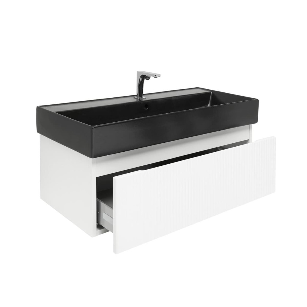 Koupelnová skříňka s baterií a umyvadlem SAT Evolution 1 98x30x44,8 cm bílá mat SATEVO100WMU2BBA