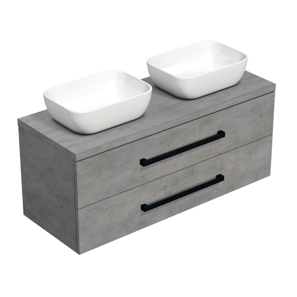 Koupelnová skříňka s černou úchytkou a krycí deskou SAT Cube Way 120x71x46 cm beton mat CUBE46C1203BESAT45
